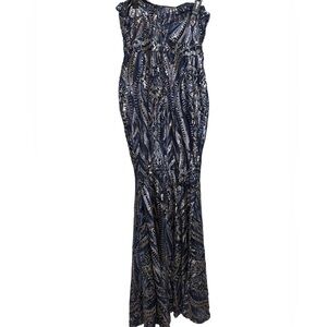 CLUB LONDON WOMEN'S SWEETHEART LONG SEQUIN STRAPLESS NAVY/GOLD DRESS SIZE US 10