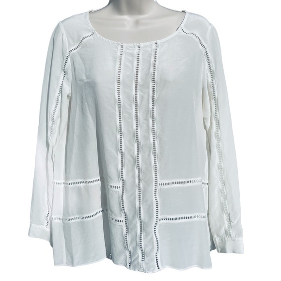 CLUB MONACO 100% Silk Blouse Long Sleeved Top White Small