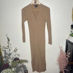 CLUB MONACO 100% Wool Cardigan Midi Dress Ribbed Button Front Sz S $250 {N29}