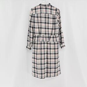 CLUB MONACO Sample Item Women's Size 6 Midi Flannel Shirt Dress Plaid Peplum Ruffle Waist Wool Blend Retro Cottagecore Western Grunge Chic