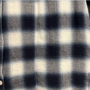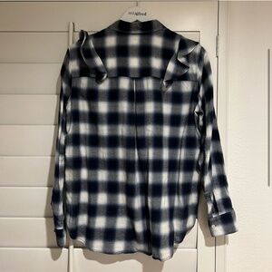 CLUB MONACO EUC Evira M Plaid Flannel Ruffle Shoulder Top Shirt Button Front
