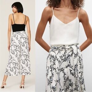 CLUB MONACO Floral Satin High Waist Wide Leg Ankle Crop Straight Leg Trousers 8