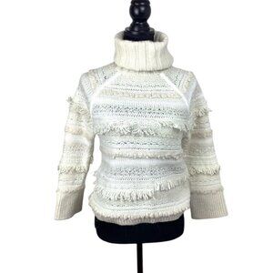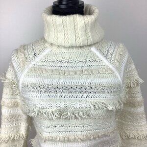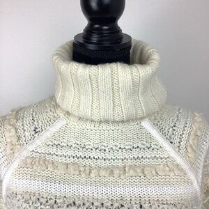 CLUB MONACO HANDKNIT WOOL Cream CHUNKY TURTLENECK SWEATER S