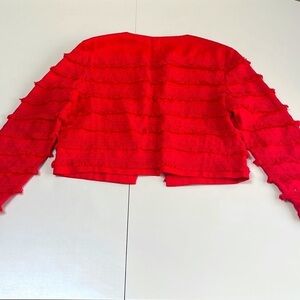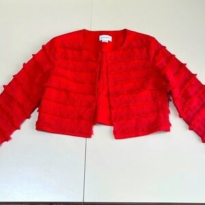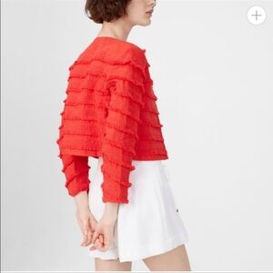 On the fringe. Textured trim punches up a cropped jacket made for lightweight layering.