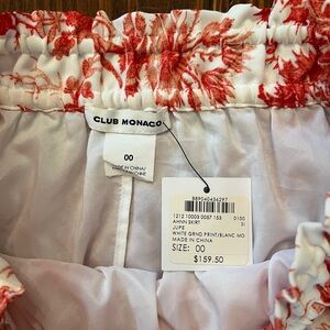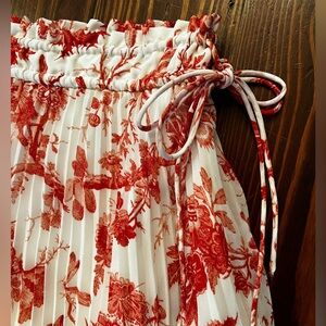 Brand new with tags, Club Monaco Red and white floral pleated skirt with darling ties in the side!