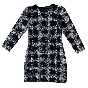 CLUB MONACO SHEATH DRESS BLACK & WHITE ABSTRACT PRINT LONG SLEEVE SIZE 2