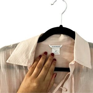 CLUB MONACO Semi Sheer Light Salmon Pink Long Sleeve Tunic Top Sz S