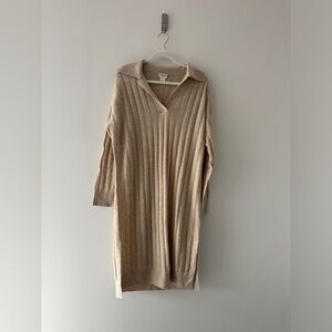 CLUB MONACO Tan Cashmere Ribbed Polo Dress L