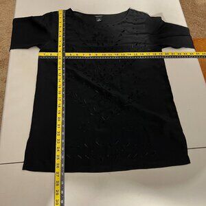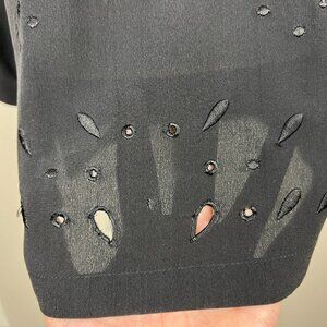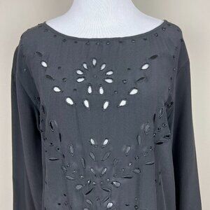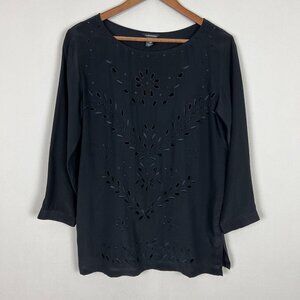 CLUB MONACO Tunic Top Womens Small Black Silk Eyelet 3/4 Sleeve Sheer Blouse S
