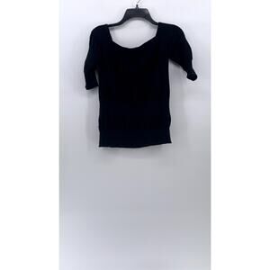 CLUB MONACO Women's Black Ribbed Boatneck Short Elbow Sleeve Top SZ S