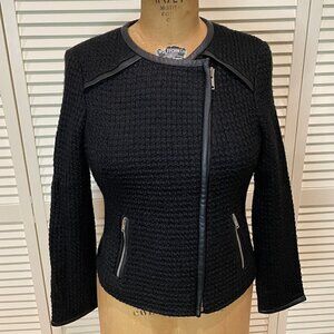 CLUB MONACO Women's Black Sweater Jacket With Leather Trim Size 8