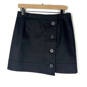 CLUB MONACO Women’s Side Button-Up Mini Skirt - Asymmetric Hem Black Size 6 Chic
