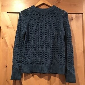 CLUB MONACO wool alpaca blend sweater in teal. Size S. Features an open stitch design that adds some texture to a classic winter staple. New with tag.