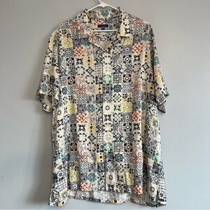 CLUB ROOM Mens Rumbie Mixed Medallion Silk Rayon Button Down Shirt Sz 2XL Casual