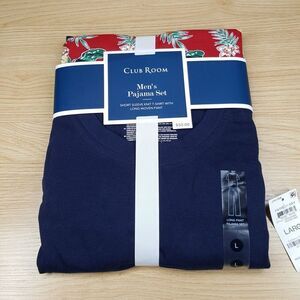 CLUB ROOM Mens Sleepwear Large Blue Crew Red Floral Tropical Pajama Set PJs
