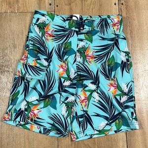 CLUB Room men's green/ blue Hawaiian lined cargo style swim trunks. size M NWOT