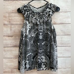 CLUB MONACO 100% SILK TOP IN BLACK AND WHITE PRINT