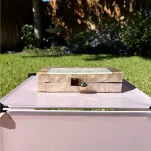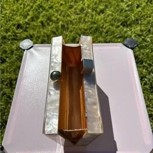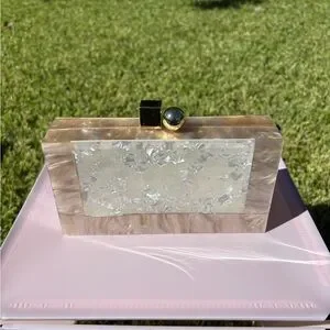 Acrylic and mother of pearl clutch; minor warping but it still closes all the way