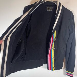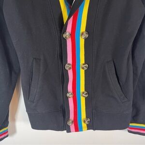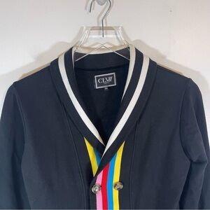 CLVZZ Paris Black multi color stripes Embroidered logo long sleeve V neck XS