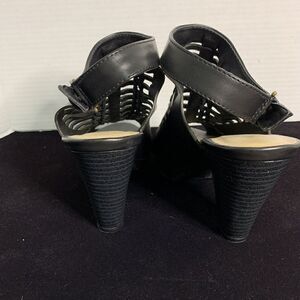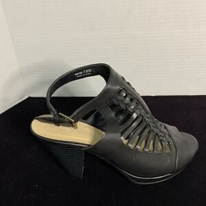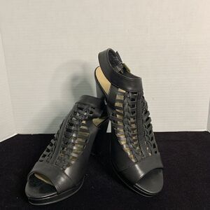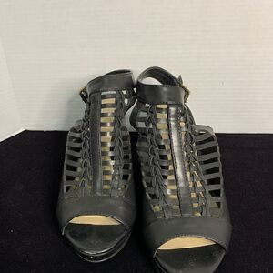 CL by Laundry Way-026 Black Braided Design Slingback Sandals Heels Shoes 7.5