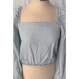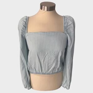 CLoth & Stone Small Blue Chambray Top Square Neck Puff Shoulder