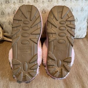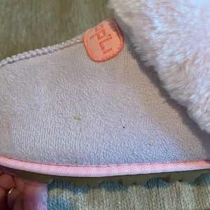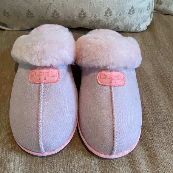 CLpp’LI warm fuzzy slippers. Tried on but never worn. Runs small. Small mark on right and left slipper (see photos).