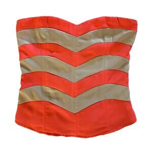 C.Luce Coral & Tan Chevron Strapless Smocked Tube Top – Size Large