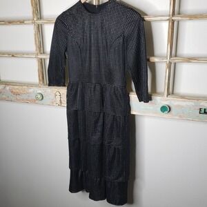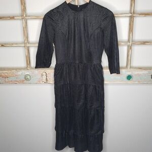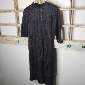 Camilla and Marc Collection black tiered lined dress with 3/4 sleeves and metal studs in ladies size 36/6. Measures 16.5" pit to it and 42" in length, waist measuring 13.5" and sleeves at 16.5". This dress is a stunner with a little edge. In pristine condition with no flaws. Back zipper for on/off.