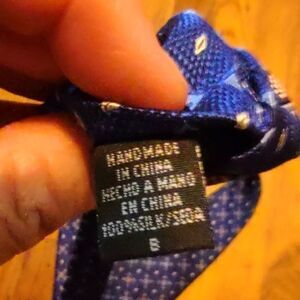 This handsome tie is a rich royal blue with a repetitive gold pattern