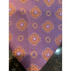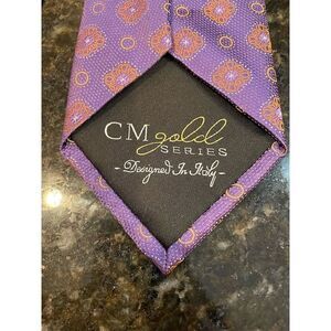 The CM Gold Series tie is a designer piece crafted from silk, featuring a floral pattern in a rich purple hue. Designed in Italy, this classic-width tie is tailored for men and offers an elegant touch to formal occasions. With a length exceeding 60 inches, it is suitable for those needing an extra-long fit. The tie is adjustable and comes new with tags.