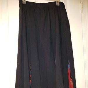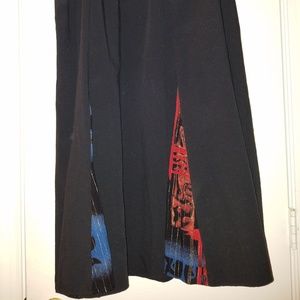 The skirt is black but has lower pleats on the bottom with the same pattern as the blouse