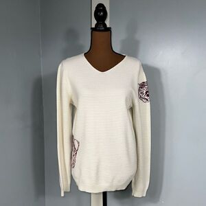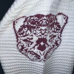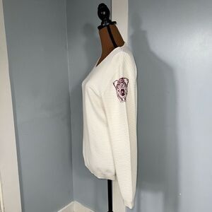 CM White Waffle Texture Long Sleeve Pullover Top White with Knit Tigers Women’s