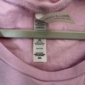 Work twice - this fits small! says this is a 2x - fits more like an Extra Large - No stains, no tears. Purchased at CMA fest in Nashville.