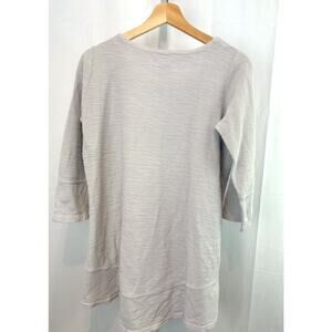CMC COLOR ME COTTON M Textured Knit Pullover Top 3/4 Sleeve Hi Low Hem Gray USA