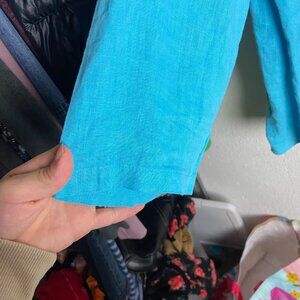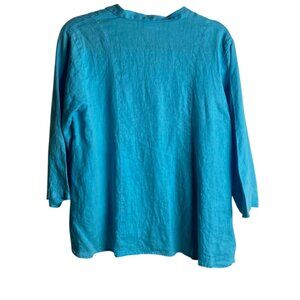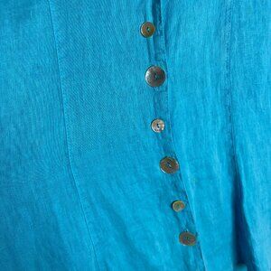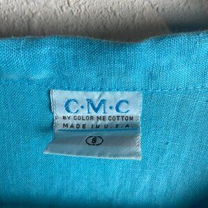 CMC Color Me Cotton Size Small Blue Linen Button Down Blouse Lagen Look Artsy