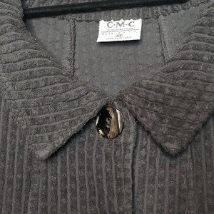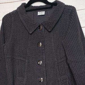 C.M.C. by Color Me Cotton Jacket. Dark Gray. Ribbed Texture. Full Button Front. Oversize Swing Style. Front Pockets. 100% Cotton. Great Preowned Condition. Size XS. Made in USA