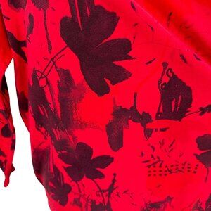 CMC Women Red Floral Print Round Neck 3/4 Sleeve Cotton Top Size L
