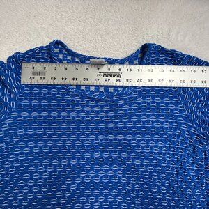 CMC Women’s Blue White Textured Knit Tunic Top Large 3/4 Sleeve High-Low Hem