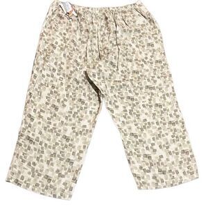 CMC womens pants S 100% linen crop green Lagenlook Breathable Bohemian Timeless