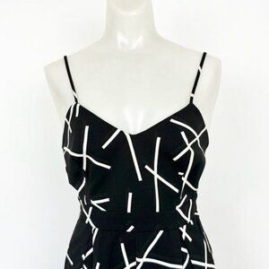 No matter what is thrown your way, the Cameo Power Trip Black Print dress will keep your look in line! Sleek woven poly with a black and ivory abstract print forms skinny adjustable spaghetti straps that top the darted triangle bodice. A banded waist rests atop stylish pleats and rounded pockets, that flow into the wide skirt,