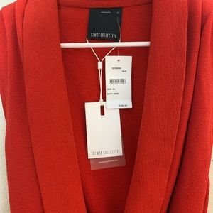 Never worn, with tags red asymmetrical dress. Beautiful crepe like fabric with flattering wrap style.