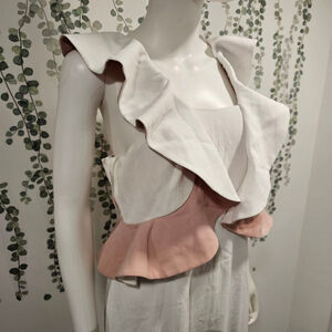 C/MEO Collective Elation Ruffle Maxi Dress Ivory Blush Size Large