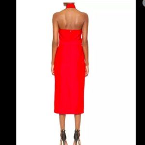 Stunning red backless dress. Halter neckline. Elegant wrap design. Perfect for evening wear.