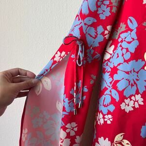 C/MEO Collective Red Blue Floral Split Sleeve Mini Shift Dress Size XS