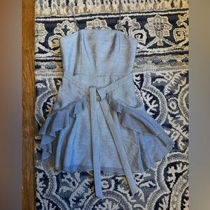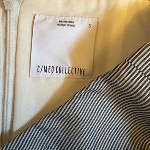 Elegant dress with cream base and black stripes. Sophisticated design by C/MEO Collective. Great condition.