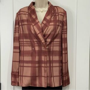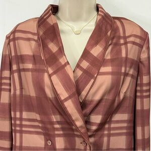 C/MEO Collective Silky Plaid Blazer Jacket Small Double Breasted Chic Rust Red
