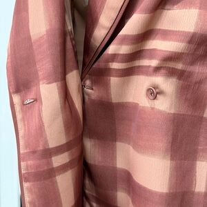 plaid, rust, blush, tailored, double breasted, modern, structured, chic, minimalist, polished, statement, lightweight, lined, workwear, fall fashion, classic, trendy, sample piece, neutral tones, versatile, clean girl, minimalist, workwear, business casual, interview, capsule wardrobe