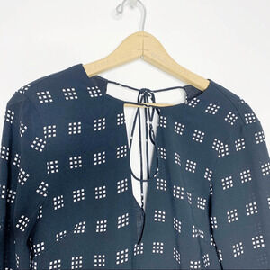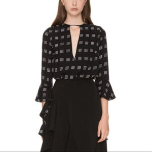 C/MEO Collective Spelt Out Top Long Sleeve Blouse Plunge black ruffle womens XS