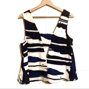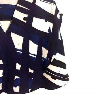 White with blue paint splash print