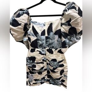 C/MEO collective NWT size small puff sleeve mini black white and blue so pretty